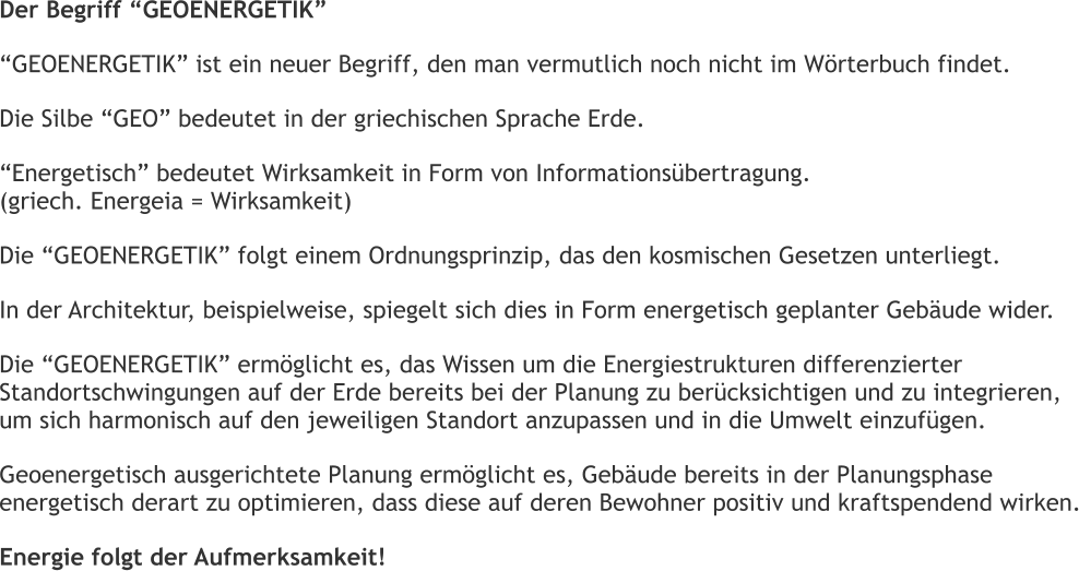 Der Begriff "Geoenergetik" Architekt DI Wolfgang WAREKA